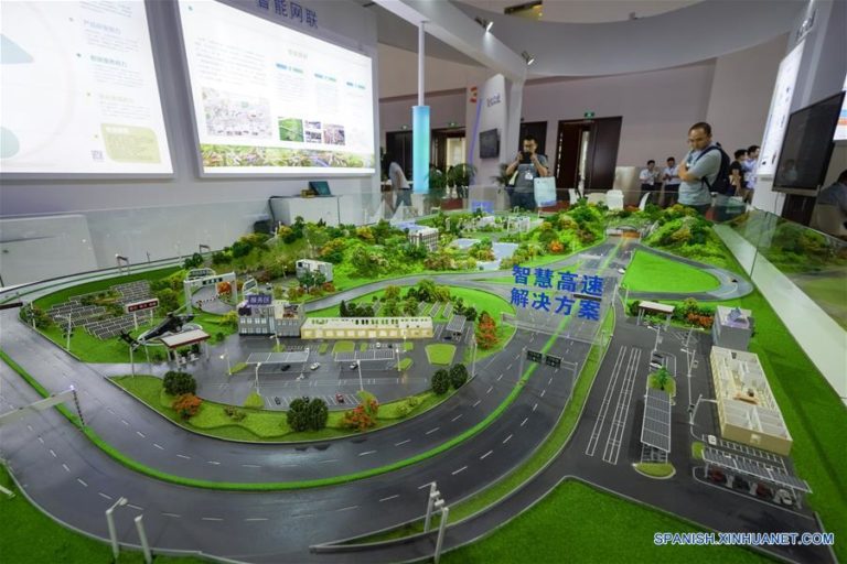 BEIJING, 14 junio, 2019 (Xinhua) -- Visitantes prueban una maqueta con realidad aumentada sobre prevención y reducción de desastres en...